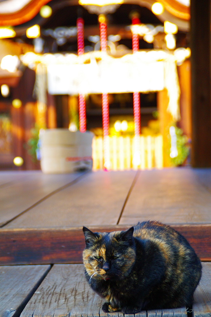 恐い表情でこちらを見ていますが、頭をなでさせてくれて、帰りは神社を出るところまで付いてきて見送ってくれました。