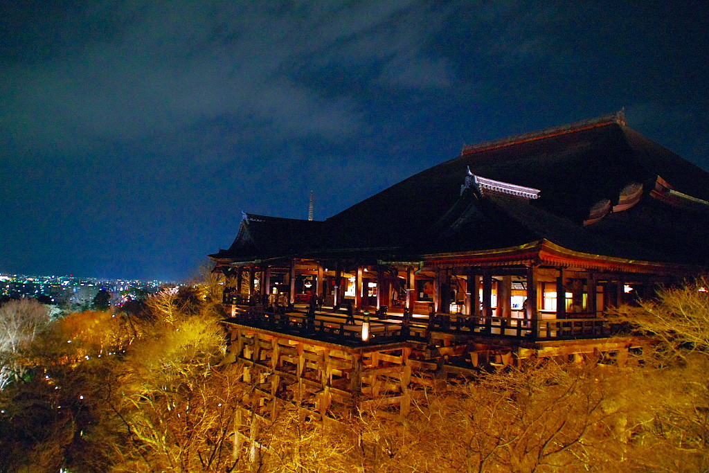 左に見える、京都の街明かりも美しい。